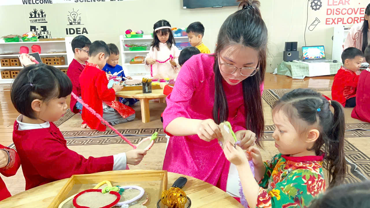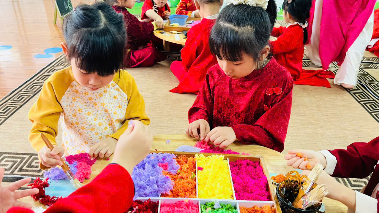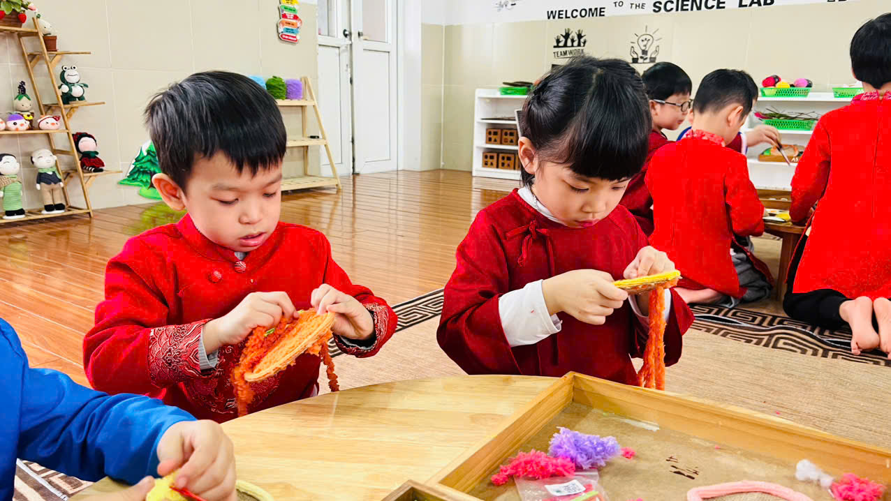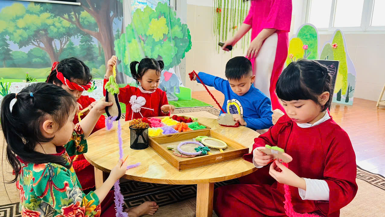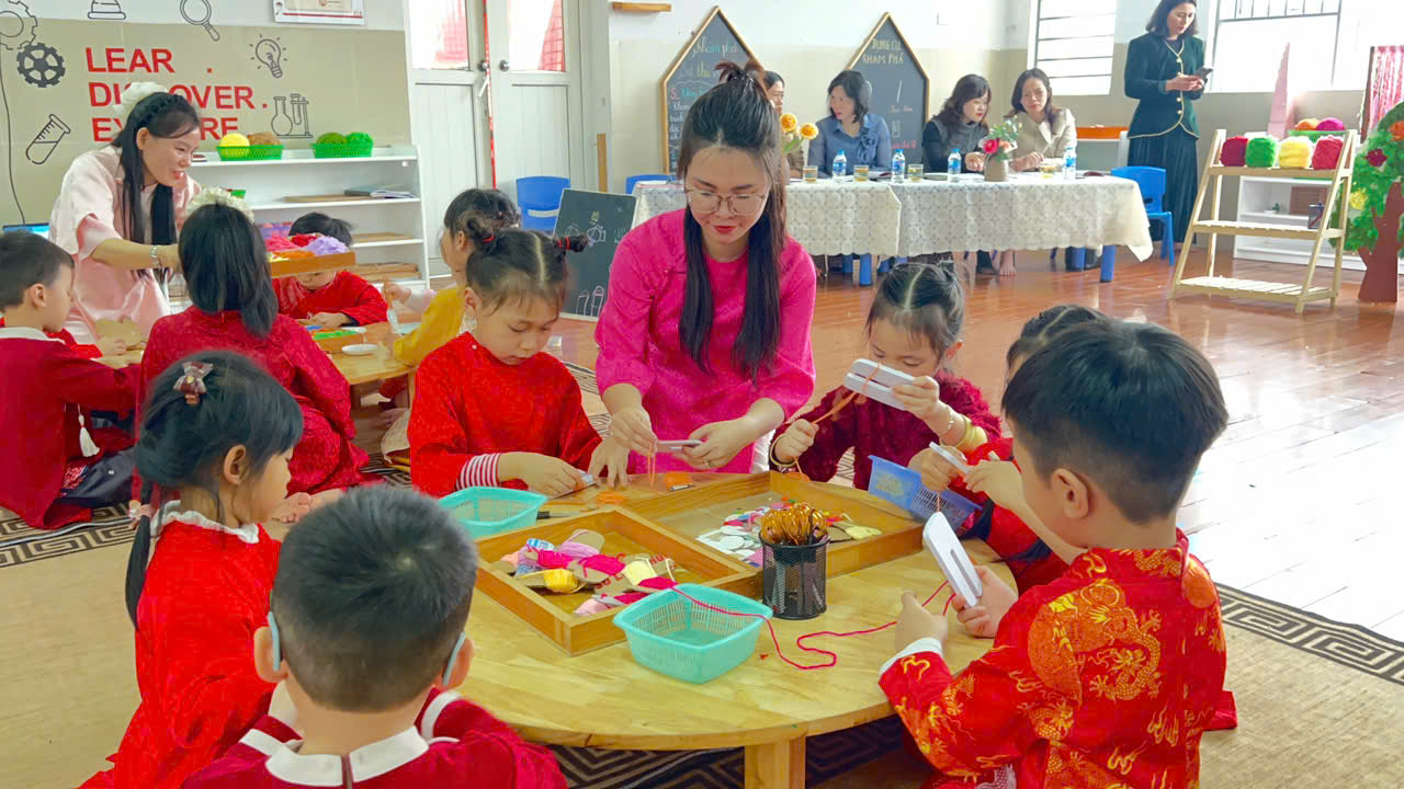 Trong quá trình trải nghiệm với sợi len, trẻ được khuyến khích tư duy, sáng tạo, hợp tác nhóm và tự tin thể hiện ý tưởng cá nhân. Môi trường lớp học được bố trí khoa học, giàu tính thẩm mỹ, tạo cảm xúc tích cực cho trẻ khi tham gia hoạt động. Điểm nhấn của tiết dạy là việc chuyển hóa sản phẩm học tập của trẻ thành video trải nghiệm, kết hợp với bài hát được sáng tác bằng phần mềm Suno, giúp trẻ thêm tự hào về sản phẩm của mình và mở rộng trải nghiệm sau giờ học.