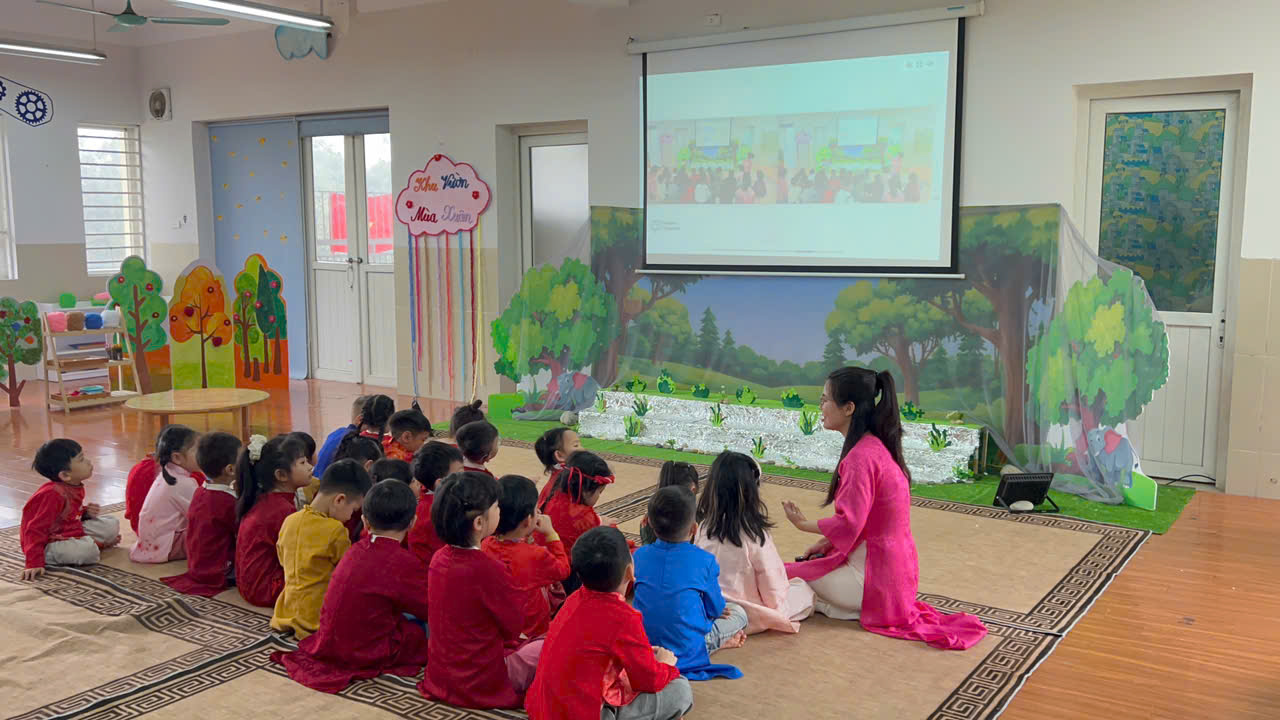 Với hoạt động tạo hình “Trải nghiệm sáng tạo từ sợi len” dành cho trẻ Mẫu giáo lớn (5 - 6 tuổi), cô giáo đã lựa chọn cách tổ chức nhẹ nhàng nhưng hiệu quả, kết hợp hài hòa giữa trải nghiệm thực tế và ứng dụng công nghệ AI trong giáo dục mầm non. Công nghệ AI được sử dụng để xây dựng tình huống dẫn dắt xuyên suốt giờ học, giúp trẻ tương tác, trao đổi và kết nối nội dung bài học một cách tự nhiên theo chủ đề Tết và mùa xuân. AI không thay thế vai trò của giáo viên mà đóng vai trò hỗ trợ, làm tăng hứng thú và duy trì mạch hoạt động cho trẻ.