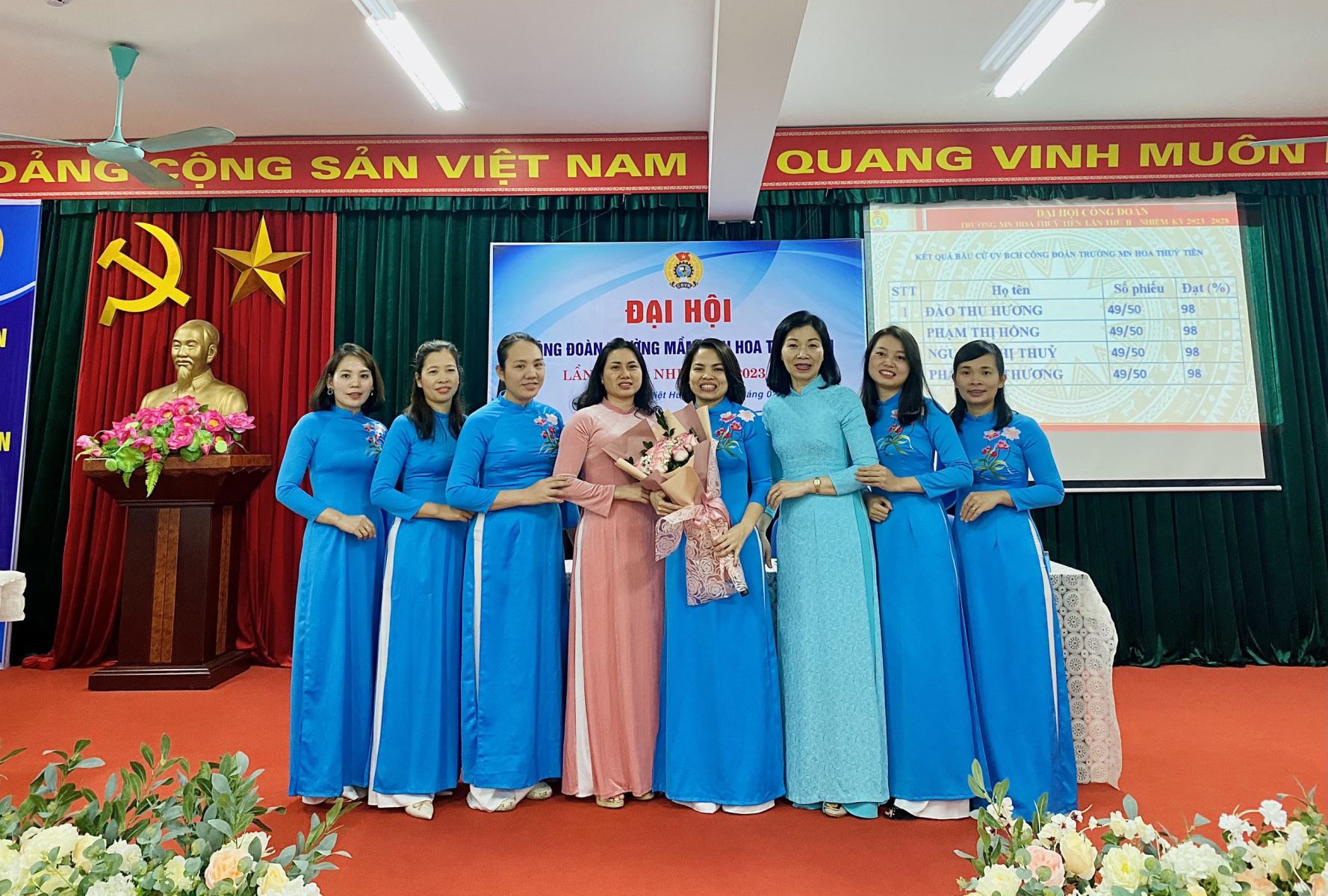 Với phương châm “Đổi mới, dân chủ, đoàn kết, phát triển” Đại hội Công đoàn Trường MN Hoa Thuỷ Tiên lần thứ II đã hoàn thành các nội dung, chương trình đề ra, đảm bảo đúng quy định Điều lệ Công đoàn Việt Nam, quy trình, hướng dẫn của Công đoàn cấp trên, được LĐLĐ Quận ghi nhận, đánh giá cao.