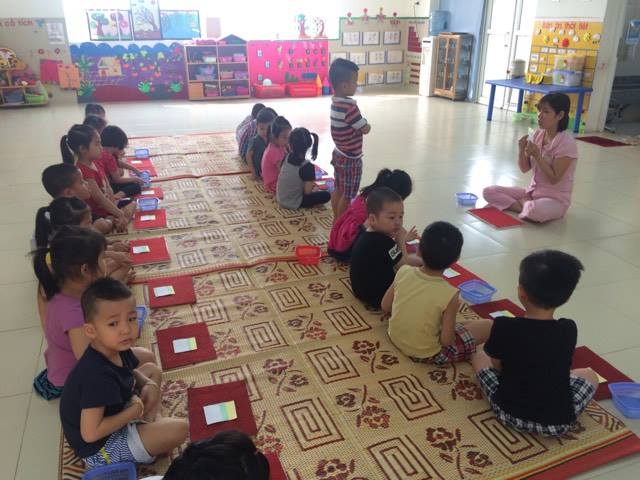 Với mục đích giúp trẻ nhận biết phân biệt sự giống nhau và khác nhau về chiều rộng của 3 đối tượng và trẻ làm quen với việc sử dụng đúng các từ toán học: rộng nhất, rộng hơn, hẹp hơn và hẹp nhất, trẻ biết thực hiện kỹ năng xếp chồng để so sánh chiều rộng của 3 đối tượng. Các cô giáo lớp MGN B4 đã có một giờ học hay cho các con