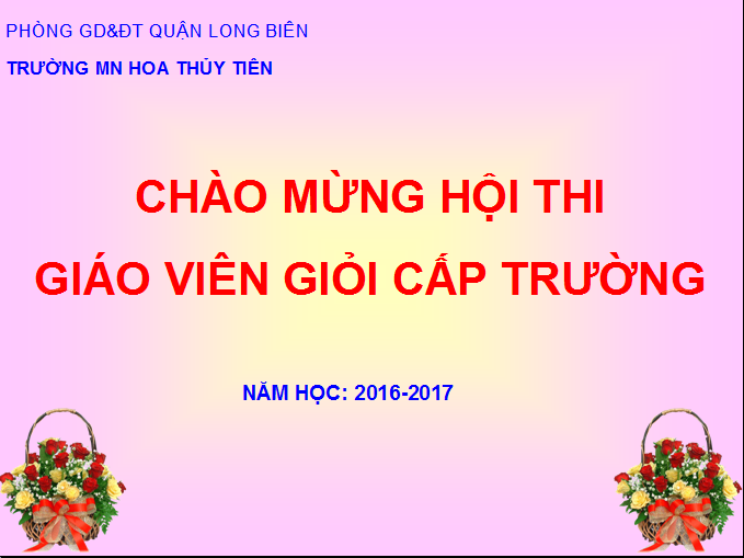 Trường mầm non Hoa Thủy Tiên phát động hội thi giáo viên dạy giói cấp trường năm học 2016-2017 với phương châm bồi dưỡng năng lực chuyên môn cho toàn thể giáo viên nhà trường, nâng cao nghệ thuật lên lớp đồng thời phát huy tính sáng tạo của giáo viên trong quá trình giảng dạy.