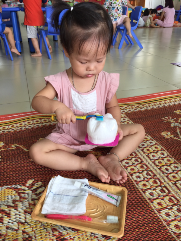 Với các bé lớp nhà trẻ thì các kỹ năng tự phục vụ bản thân như mang giầy, tất, đi dép, mặc quần áo là những kỹ năng rất mới và khó với trẻ, do tuổi còn nhỏ, nên khi ở nhà, các bé thường được ông bà, bố mẹ chăm sóc và giúp đỡ từ những việc nhỏ bé nhất. Nhưng khi đến lớp, các bé được học, được thực hành và trải nghiệm nhiều hơn theo cách "học bằng chơi, chơi mà học". Qua việc sử dụng đồ dùng đồ chơi là các mô hình đồ vật như quần áo, giầy dép, dụng cụ hàng ngày, các bé trở nên vô cùng yêu thích bởi màu sắc bắt mắt của các đồ dùng trong lớp, điều này tạo hứng thú cho các bé trong quá trình thực hành, trải nghiệm.