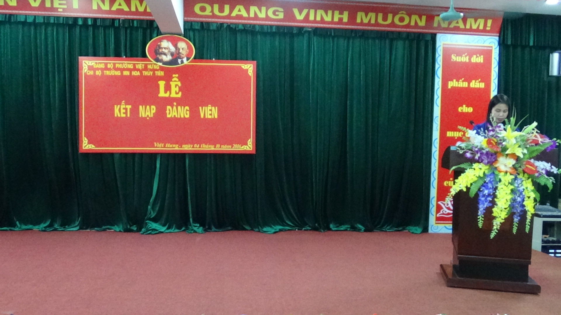 Thực hiện Quyết định của Ban thường vụ Quận ủy Long Biên. Chiều ngày 04/10/2016, Chi bộ Trường mầm non Hoa Thủy Tiên tổ chức Lễ kết nạp Đảng viên mới.