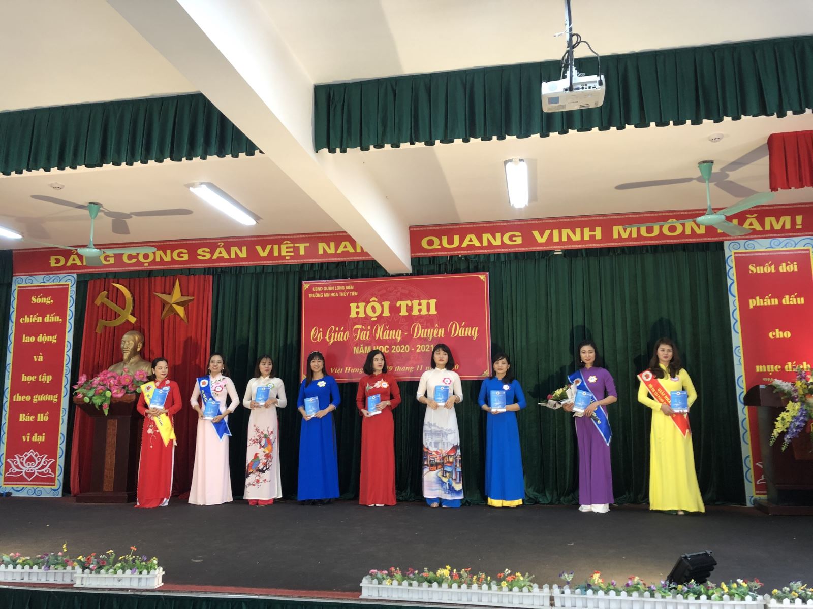 Thực hiện  !important;hướng dẫn của Phòng Giáo dục & Công đoàn ngành Giáo dục & Đào tạo quận Long Biên về việc Hướng dẫn tổ chức Hội thi Cô giáo tài năng duyên dáng năm học 2020 - 2021, Trường Mn Hoa Thủy Tiên đã tổ chức hội thi "Cô giáo tài năng duyên dáng" với sự tham gia của 9 cô giáo tiêu biểu đến từ 4 tổ khối chuyên môn của nhà trường.