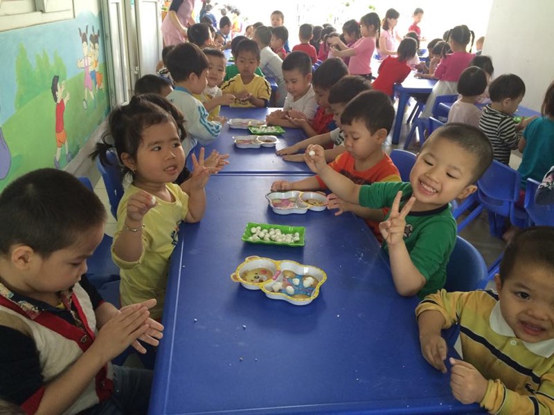 Hiện nay, trẻ đi học thường ăn bán trú ở trường, bữa ăn thường được ghi rõ chi tiết cụ thể lượng lương thực thực phẩm, bữa chính và bữa phụ trong ngày. Thực đơn bữa ăn của trẻ hàng ngày, nhà trường treo ở những nơi để các bậc phụ huynh dễ đọc, việc này do nhân viên y tế trường phụ trách. Đến mỗi bữa ăn, giáo viên mầm non đi lấy số suất ăn được chia theo lớp (theo nhóm tuổi), thậm chí có chế độ riêng cho trẻ nhẹ cân.Với khoa học công nghệ phát triển như ngày nay về thiết bị điện tử, công nghệ thông tin, nhiều bà mẹ ở nhà hoặc đi làm vẫn có thể biết con mình được ăn uống, nghỉ ngơi và vệ sinh ra sao thông qua camera. Trẻ ăn bán trú hoàn toàn có thể đảm bảo được nhu cầu về dinh dưỡng, cũng như an toàn thực phẩm, bởi hiện nay các trường có cán bộ y tế, họ đã được trang bị kiến thức về dinh dưỡng và an toàn thực phẩm. Bữa ăn ở trường đáp ứng khoảng 40%, bữa sáng và tối ở nhà đáp ứng 60% nhu cầu dinh dưỡng hàng ngày của trẻ. Một trẻ khỏe mạnh, khi ăn uống đủ sẽ phát triển tốt cả về cân nặng và chiều cao. Phụ huynh có thể tham khảo theo công thức sau: