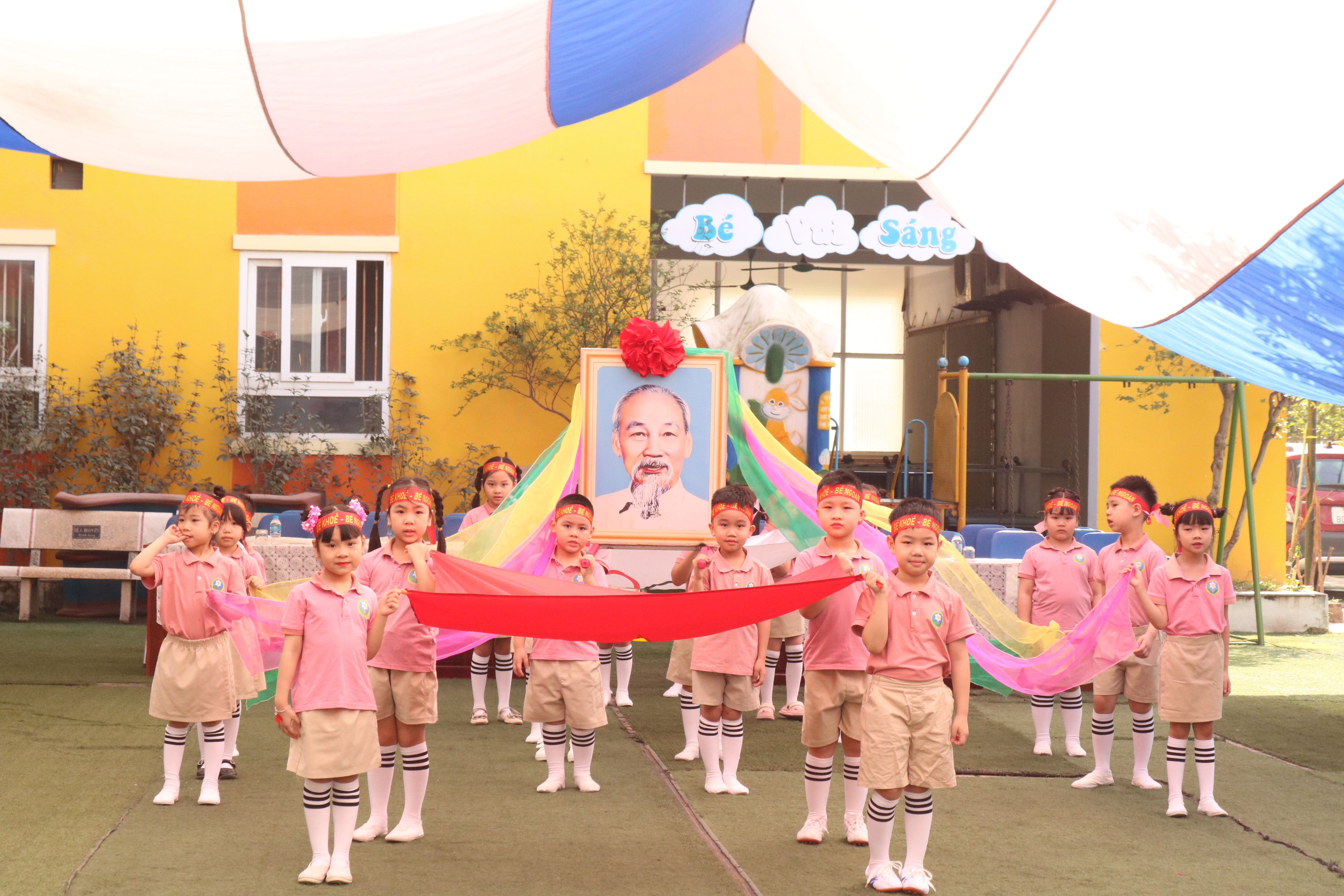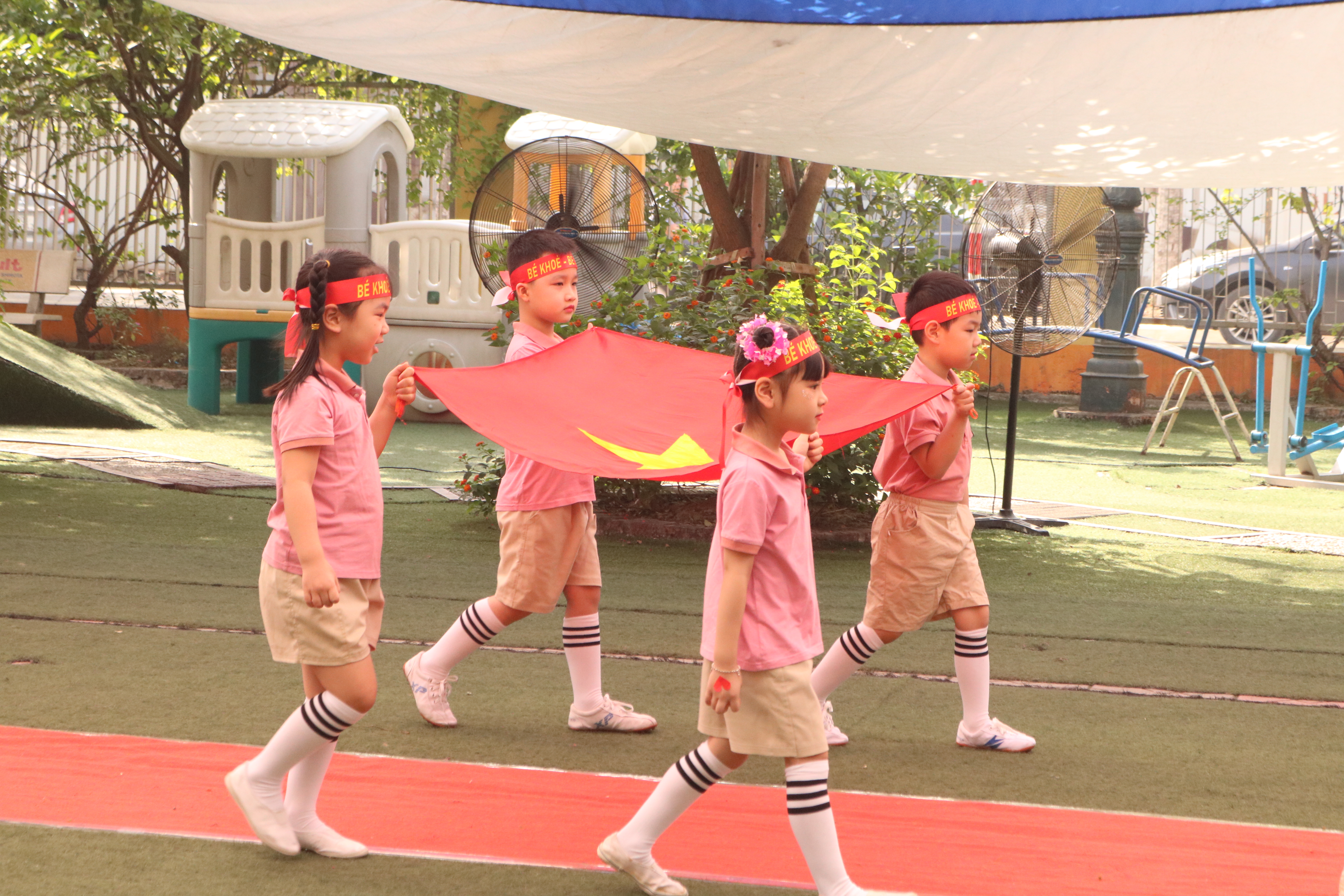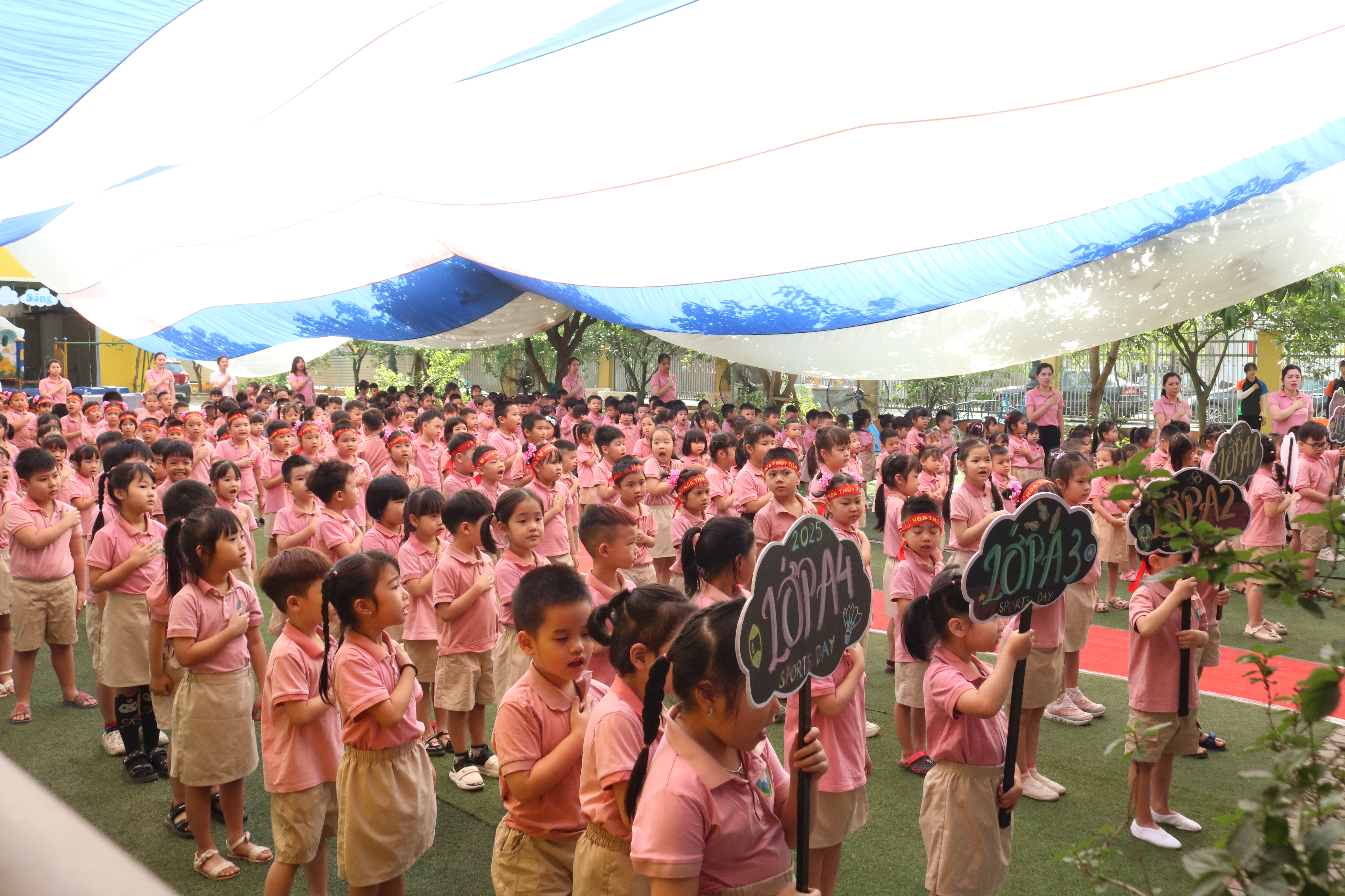 Chương trình diễn ra trong không khí vui tươi, náo nức với sự tham gia đầy đủ của các bé thuộc ba khối lớp: Bé – Nhỡ – Lớn. Mở đầu ngày hội là nghi thức rước cờ, rước đuốc Olympic, diễu hành các lớp và phần phát biểu khai mạc từ cô Hiệu trưởng Nguyễn Thị Thu Trang. Những hình ảnh chỉn chu, nghiêm túc của các bé khiến không khí buổi lễ thêm phần trang trọng và đáng nhớ.