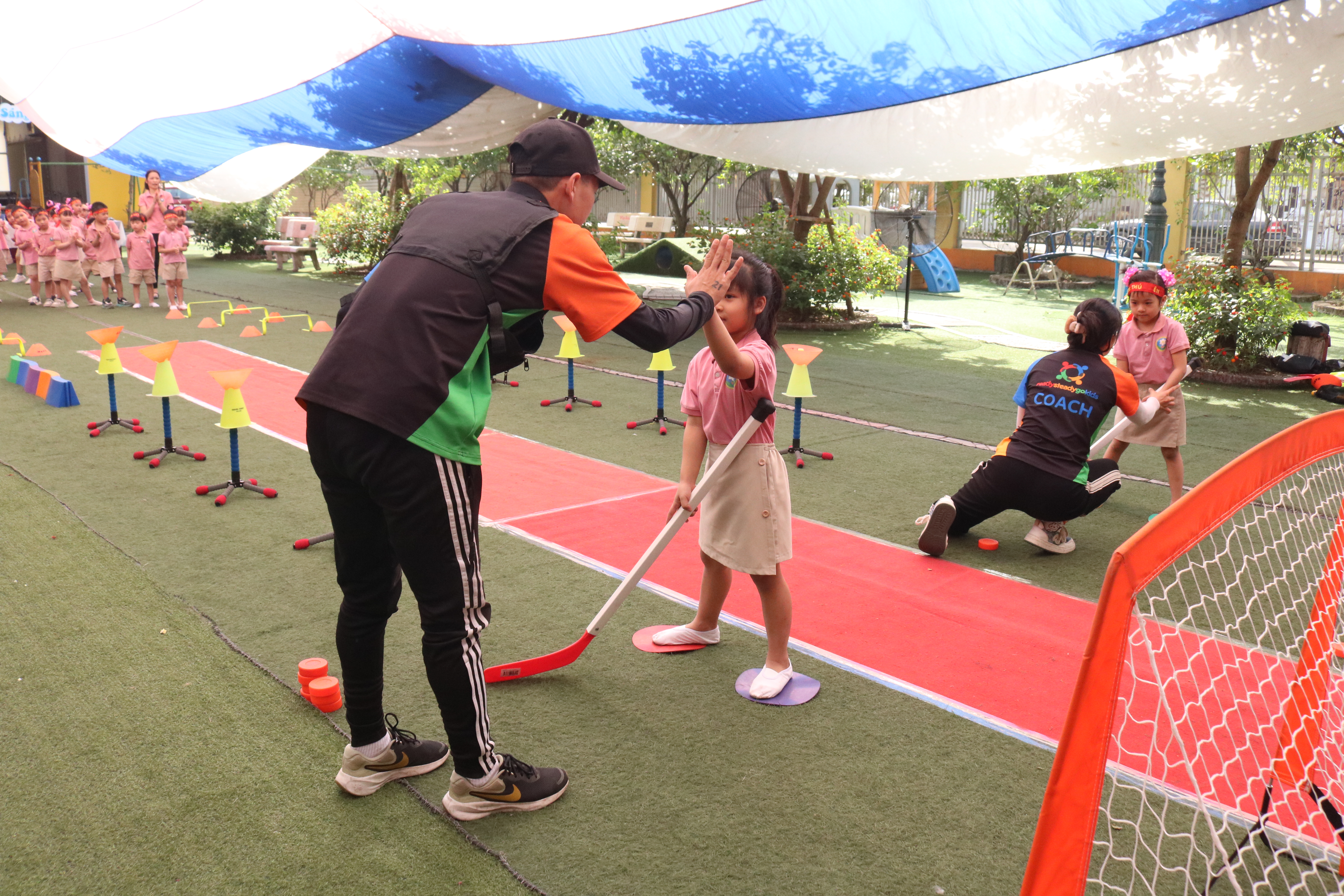 Các huấn luyện viên GoKids phối hợp cùng giáo viên chủ nhiệm đã hỗ trợ đắc lực trong việc tổ chức và hướng dẫn trò chơi, tạo điều kiện để mỗi bé đều cảm thấy vui vẻ và hứng khởi.