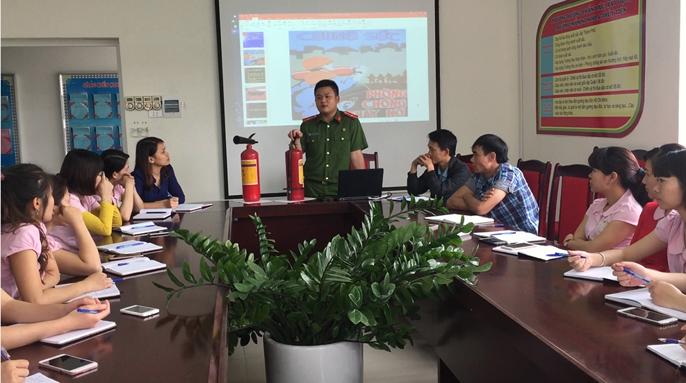 Nhằm đẩy mạnh công tác tuyên truyền, giáo dục và nâng cao nhận thức về phòng cháy, chữa cháy trong toàn xã hội góp phần hạn chế tới mức thấp nhất thiệt hại do cháy nổ gây ra. Ngày 05/04/2017 Trường mầm non Hoa Thủy Tiên đã tiến hành tập huấn công tác phòng cháy, chữa cháy. Tại buổi tập huấn, toàn thể CBGV-NV đã được giảng viên cung cấp những thông tin về những vụ cháy lớn gây thiệt hại nghiêm trọng về người và tài sản xảy ra trên phạm vi cả nước và trên địa bàn Hà Nội trong những năm gần đây.