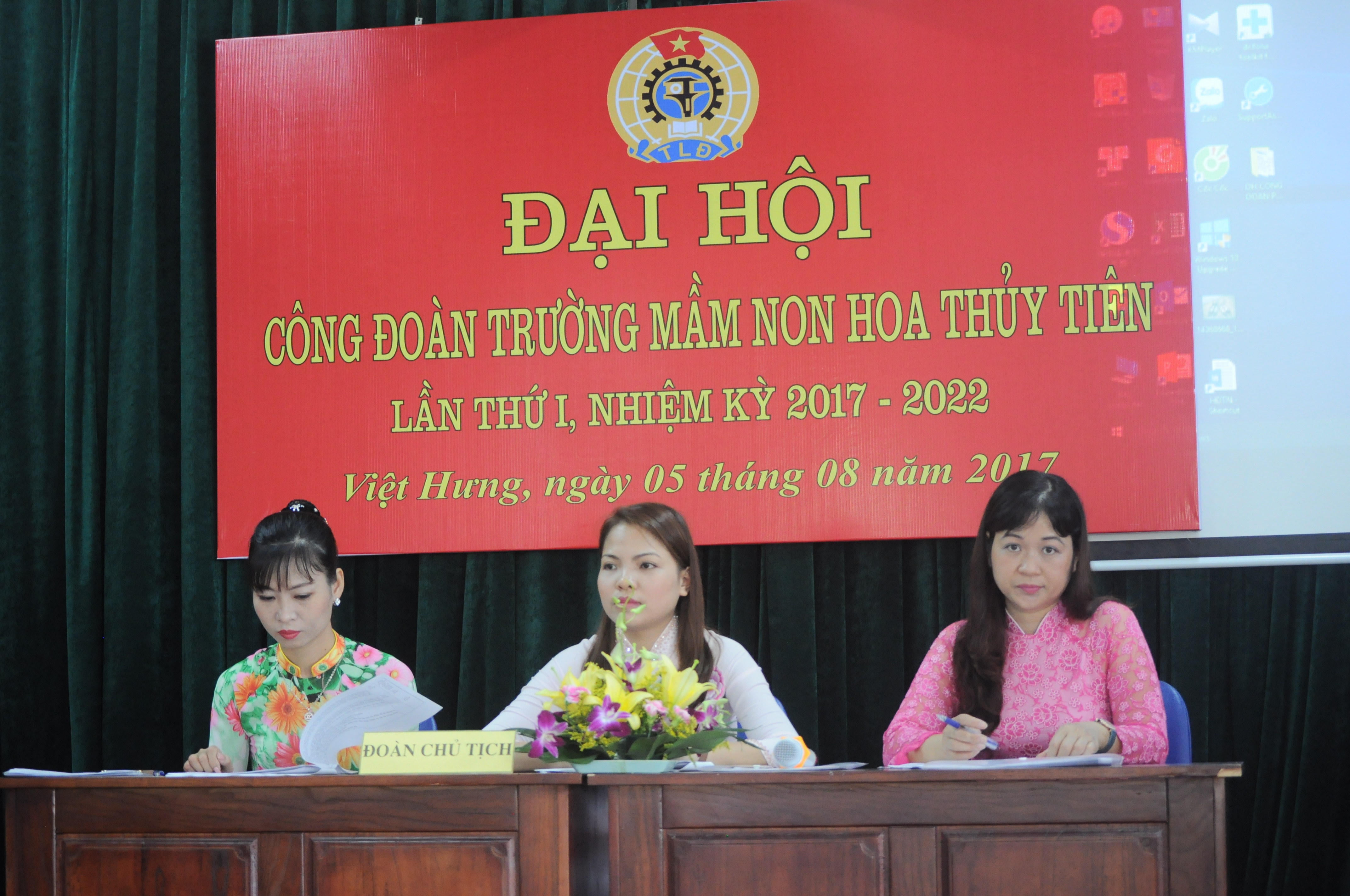 Thực hiện Kế hoạch số 23/KH-LĐLĐ ngày 27/02/2017 của Liên đoàn Lao động quận Long Biên về tổ chức Đại hội, Hội nghị công đoàn cơ sở tiến tới Đại hội Công đoàn quận Long biên lần thứ IV, nhiệm kỳ 2018 - 2023; và Kế hoạch số 01/KH-CĐMNPĐ ngày 10/07/2017 của Công đoàn trường MN Hoa Thủy Tiên về việc tổ chức Đại hội công đoàn khóa I, nhiệm kỳ 2017 - 2022.