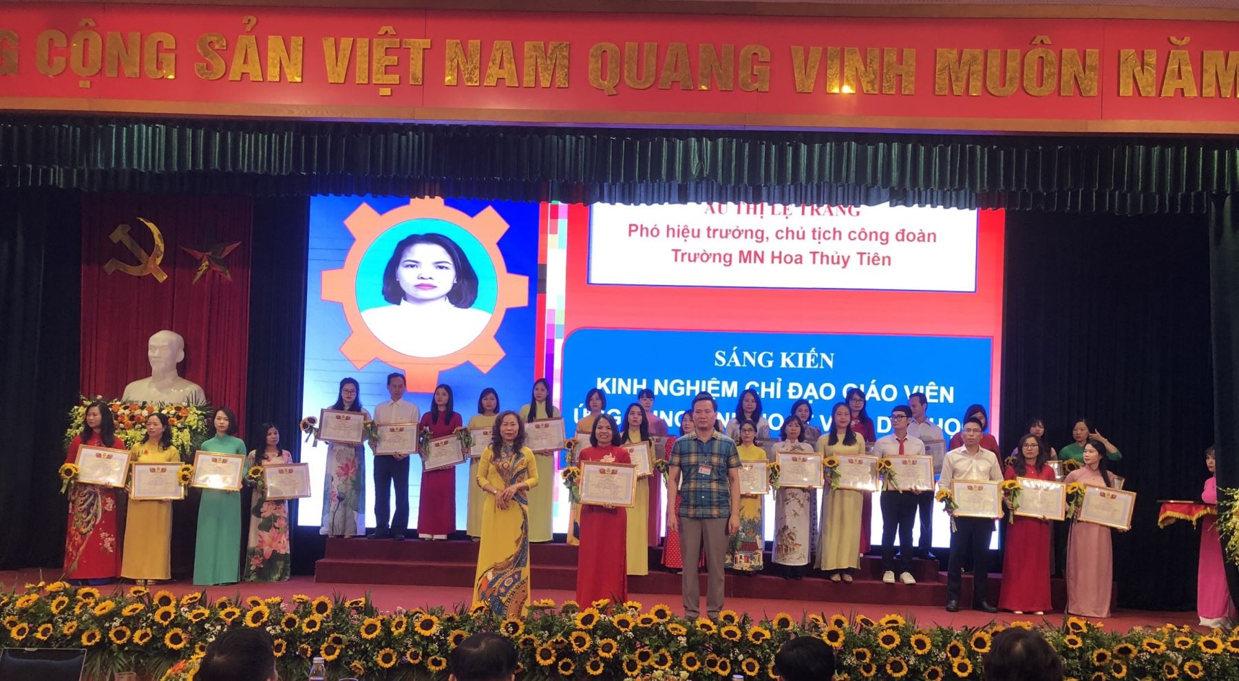 Hưởng ứng chương trình 01 triệu sáng kiến - nỗ lực vướt khó, sáng tạo, quyết tâm chiến thắng đại dịch covid-19, trường mầm non Hoa Thuỷ Tiên đã có 14 sáng kiến tham dự. Trong đó có 1 sáng kiến của đồng chí Âu Thị Lệ Trang - Phó hiệu trưởng chủ tịch công đoàn được liên đoàn lao động quận Long Biên lựa trọn là sáng kiến tiêu biểu để vinh danh tại ngày hội Sáng tạo trong CNVCLĐ quận Long Biên nhân dịp kỉ niệm 93 năm ngày thành lập công đoàn Việt Nam