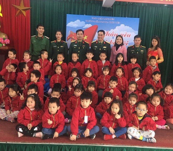 Hòa cùng không khí tưng bừng chào đón các hoạt động “Chào mừng Kỷ niệm 73 năm ngày thành lập QĐND Việt Nam 22/12/1944 - 22/12/2017”. Cùng với các ngành, Đoàn thể khác trên khắp mọi miền Tổ quốc, Trường Mầm non Hoa Thủy Tiên tổ chức nhiều hoạt động ý nghĩa nhằm giáo dục trẻ biết được ngày 22/12 là ngày truyền thống Quân đội nhân dân Việt Nam, biết các chú bộ đội luôn cống hiến hết mình cho sự nghiệp bảo vệ Tổ quốc để giữ bình yên cho quê hương, đất nước, hình ảnh chú bộ đội không xa lạ mà rất gần gũi thân thương để từ đấy các cháu có những tình cảm, suy nghĩ và biết yêu thương, quý trọng chú Bộ đội.