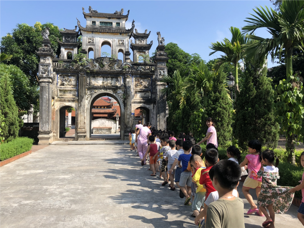 Nhằm tuyên truyền giáo dục truyền thống cho trẻ thông qua các hoạt động giáo dục. Các cô giáo khối mẫu giáo lớn tổ chức cho trẻ tham quan đình làng Lệ Mật.
