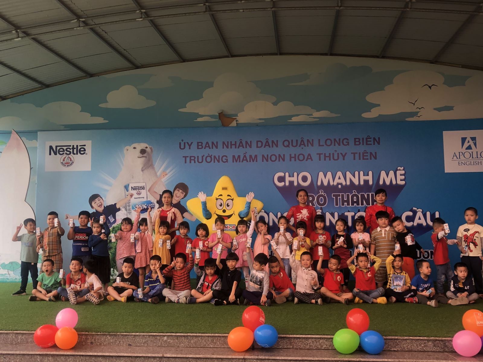 - Quà tặng may mắn: Apollo English gửi tặng những phần quà may mắn là những học bổng, đồ dùng học tập dành cho các học sinh trong trường.