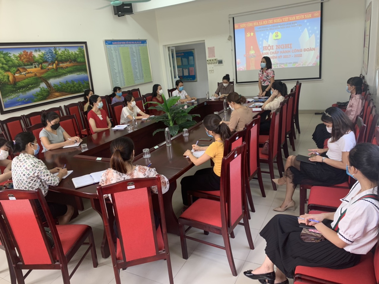 Được sự nhất trí của Liên đoàn lao động quận Long Biên, Chi bộ nhà trường sáng ngày 05/10/2021 công đoàn trường MN Hoa Thủy Tiên tổ chức hội nghị kiện toàn ban chấp hành công đoàn Khóa I, Nhiệm kỳ 2017 - 2022.