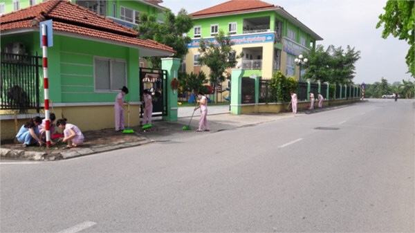 Một số hình ảnh hoạt động của buổi tổng vệ sinh trường mầm non Hoa Thủy Tiên