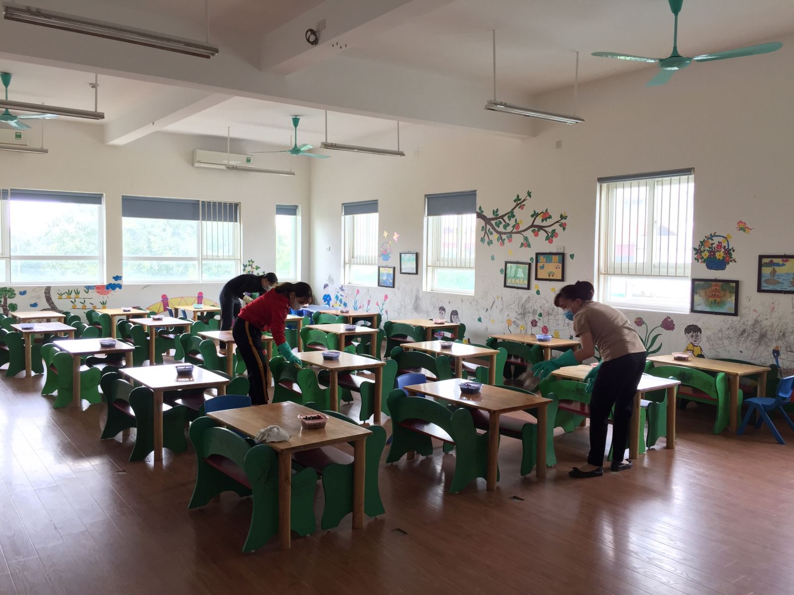 Thực hiện chỉ đạo của Sở Giáo dục và Đào tạo Hà Nội, phòng Giáo dục và Đào tạo quận Long Biên, sáng 28/02/2020, 100% cán bộ, giáo viên, nhân viên trường mầm non Hoa Thủy TIên có mặt tại trường để làm tổng vệ sinh môi trường bằng dung dịch ClofaminB để phòng, chống dịch viêm đường hô hấp cấp nCoV lần 4.
