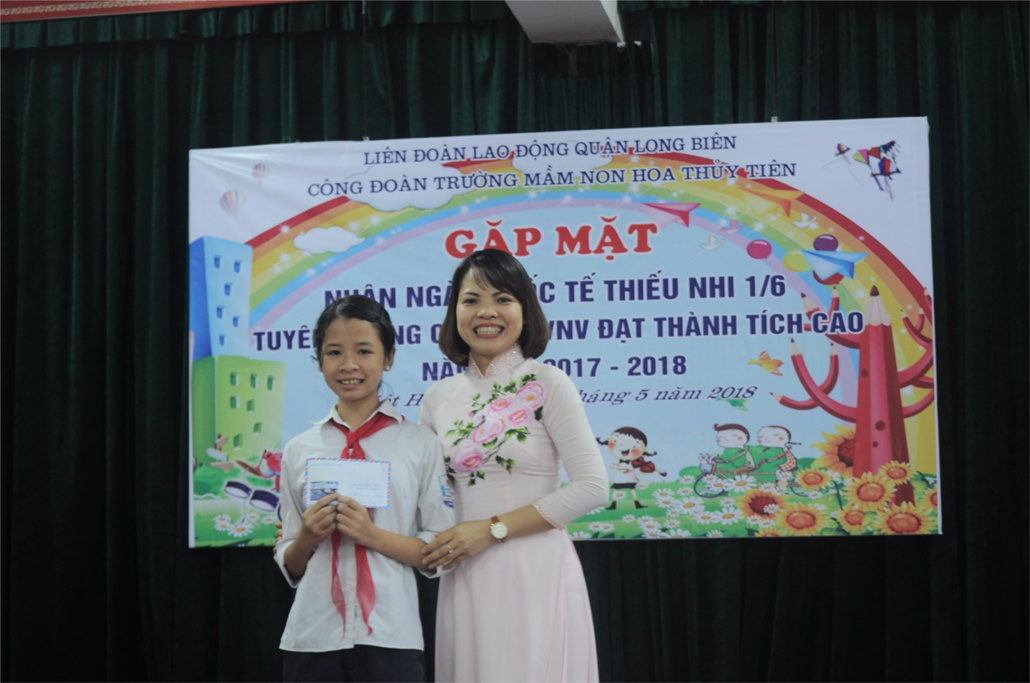Nhằm động viên tinh thần cho con em CBGVNV trong nhà trường, đồng thời tạo điều kiện cho các em có thật nhiều niềm vui trong ngày Tết thiếu nhi sau thời gian học tập, đạt được nhiều kết quả cao và cho các em một mùa hè tới đầy vui tươi, bổ ích. Với sự động viên nho nhỏ của Công đoàn nhà trường đã tổ chức gặp mặt, tuyên dương khen thưởng cho con CBGVNV có thành tích trong học tập. Chúc các em tthiếu nhi luôn thật nhiều niềm vui và có một hè thật bổ ích.