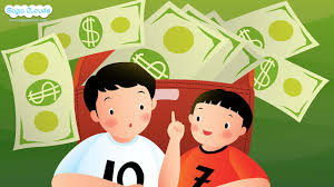Bi mở ví ra xem, con số trên những tờ tiền quá lớn đến nỗi Bi cũng chưa học tới. Bi nói với em: