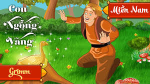 Chàng Ngốc đi đẵn cây. Hạ cây xuống thì thấy trong đám rễ có một con ngỗng lông bằng vàng thật. Anh nhấc ngỗng lên ẵm vào một quán trọ để ngủ đêm. Chủ quán có ba con gái. Ba cô thấy ngỗng, tò mò không biết là chim gì mà lạ thế, chỉ muốn lấy một chiếc lông của nó. Cô cả nghĩ cách nhổ trộm một chiếc. Khi chàng Ngốc vừa ra, chị nắm ngay lấy cánh ngỗng. Nhưng tay bị dính chặt vào đó, không rút ra được. Một lát sau, cô thứ hai đến cũng chỉ chăm chăm muốn lấy một chiếc lông vàng. Cô vừa đụng đến cô chị thì bị dính ngay vào chị. Cô thứ ba cũng tới cũng định tâm lấy lông. Hai cô chị kêu lên: