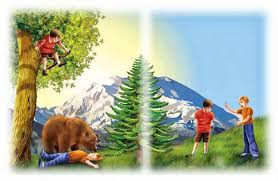 Một hôm nọ, hai anh chàng đang đi trong rừng. Bỗng nhiên từ xa có một con gấu to lớn xuất hiện, gầm gừ và tính tấn công hai anh chàng này. Thấy con gấu, hai anh chàng hốt hoảng kêu lên: "Cứu tôi với!". Anh gầy liền chạy đến một cây cao gần đấy để leo lên lánh nạn. Do quá béo, anh chàng béo kia không leo lên cây được. Thấy con gấu sắp lao đến chỗ mình, anh chàng béo cầu cứu bạn: "Làm ơn kéo tôi lên với!", nhưng anh chàng gầy lắc đầu nói: "Không được đâu, anh nặng lắm, tôi không kéo nổi đâu!" Nói xong, anh chàng gầy leo tuốt lên cao để mặc bạn mình. Thấy con gấu tiến sát gần mình, anh chàng béo liền nằm xuống đất nín thở giả vờ chết. Gấu tiến đến anh chàng béo nhưng thấy anh này nằm bất động. Con gấu hít hít vài cái rồi bỏ đi.